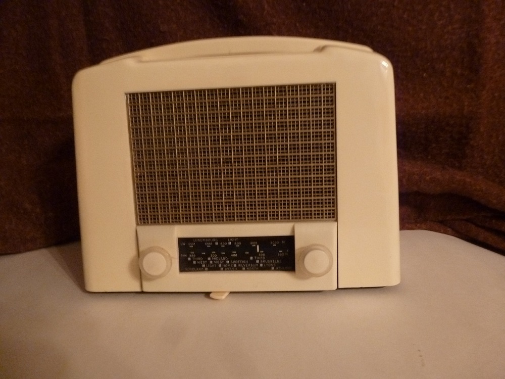 Un récepteur britannique U122 de couleur blanche, fonctionnel.