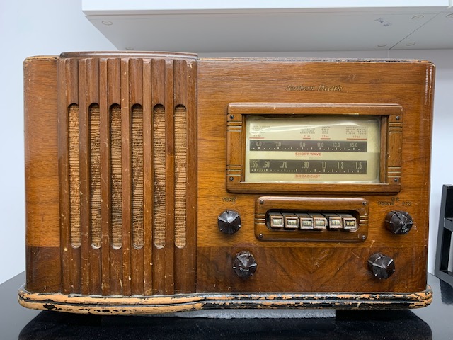 Radio Northern Electric 1556 (Semble être fabriqué à Montréal selon la plaque signalétique). Les tubes sont inclus. Voir les photos.