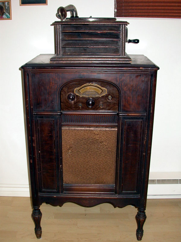 C'est avec fierté que je vous présente le résultats final de ma console Atwater Kent model 70 et j'ai reusi à trouver toute les pieces manquante pour qu'il soit entierement originale. Maintenant je vais essayer de trouver quelqu'un qui pourra la faire fonctionner. Quand je le branche j'ai un HUM et la lumiere allumesur le dial mais sans antenne dans un sous-sol de campagne je doutes capter quoi que ce soit donc par prévention je le laisse fermé.