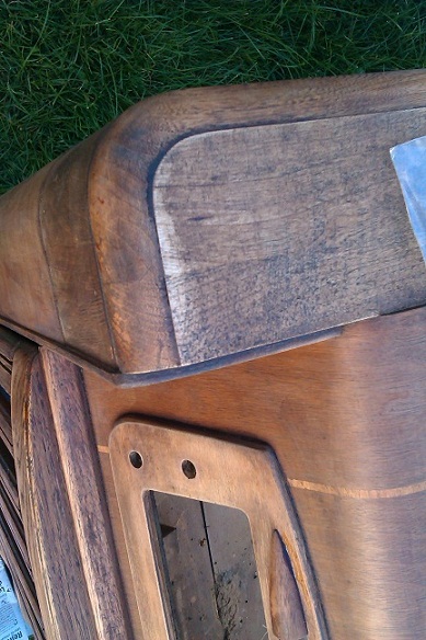 Je suis assez certain que le dessus des "épaules" ont aussi perdu l'épaisseur de placage de bois, quelque part avant que le radio ne soit en ma possession. Mais comment en être certain?