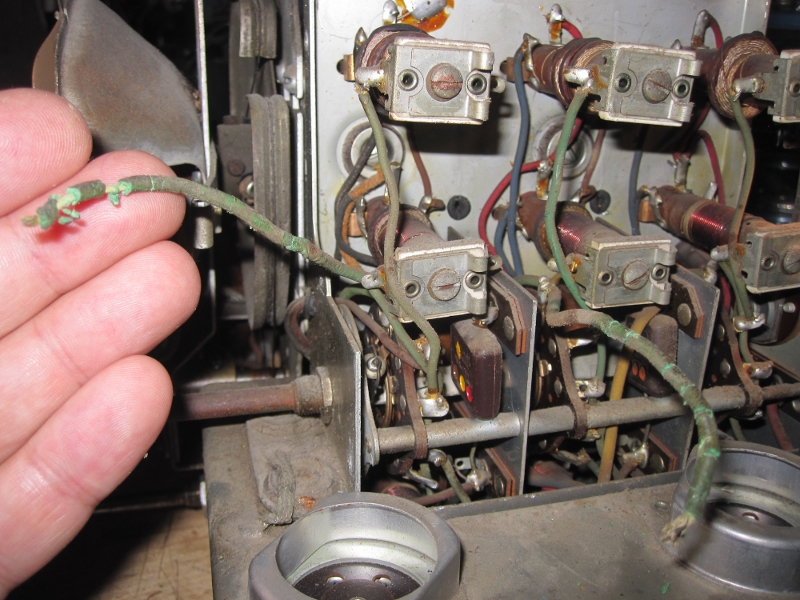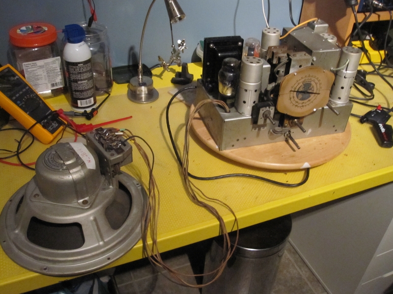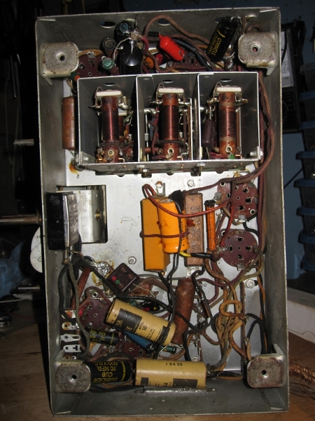J'ai changé les condensateurs, les résistances qui étaient hors valeur et tous les fils dont la gaine était trop sèche. Les filaments des lampes sont tous bons. Lorsque je l'allume, j'arrive à syntoniser plutôt convenablement sur la bande AM.