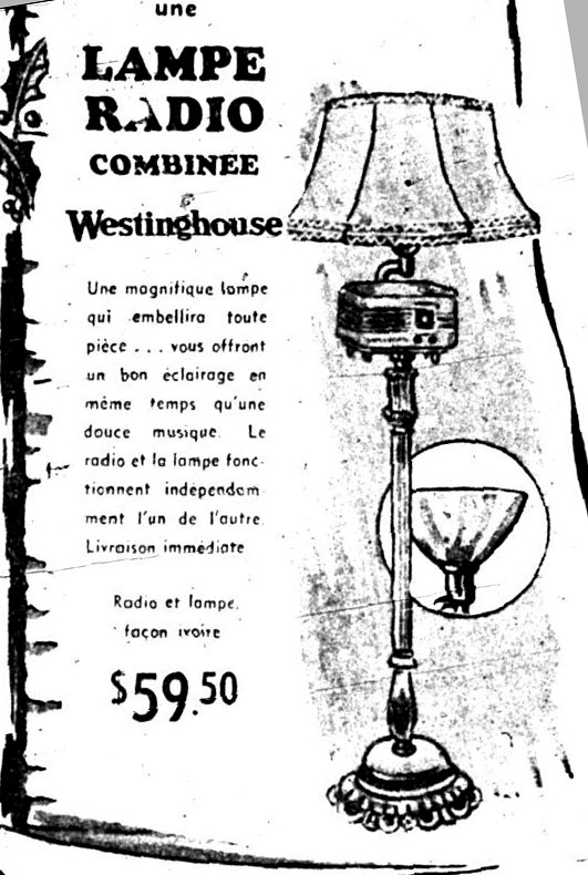 C'est assez rare d'en trouver une complète avec son abat-jour original. Il y avait aussi une autre version qui était un cendrier au lieu d'une lampe. On a une autre pub dans nos achives avec ce modèle.